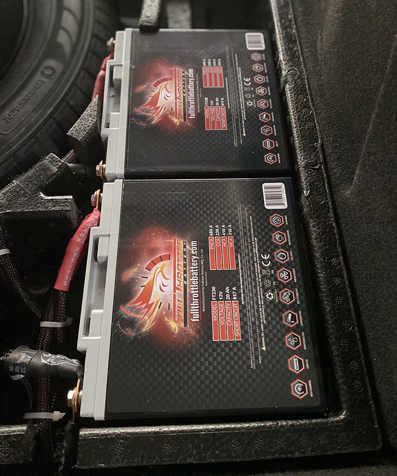 兩個美國費洛特高性能電池安裝在后尾箱飾板下面